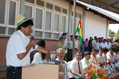 "Es obligación del Gobierno buscar el equipamiento de los hospitales, porque hasta el 2006, según lo que me informa el Ministro de Salud (Ramiro Tapia), estos instrumentos Banco de Sangre o las unidades de hemodiálisis sólo estaban en tres o cuatro departamentos, ahora estamos en todos los departamentos, porque el tema de salud es un derecho humano", enfatizó Morales en su discurso de inauguración de estos servicios médicos.